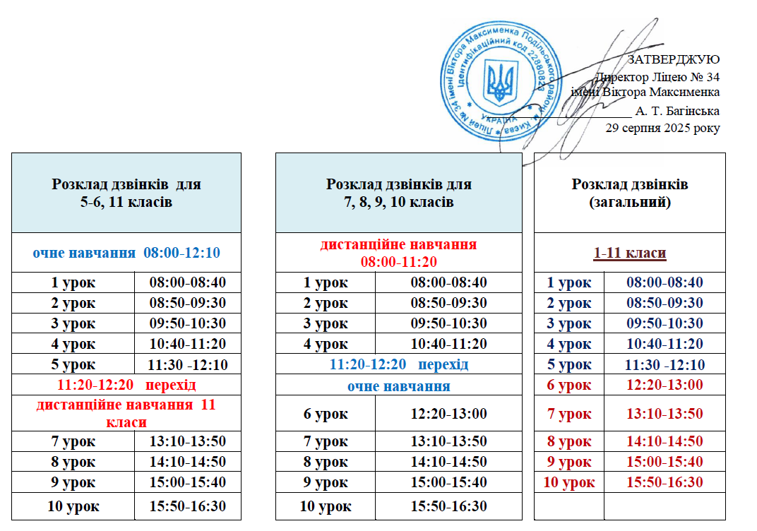 На цій сторінці ви знайдете всі діючі розклади ліцею